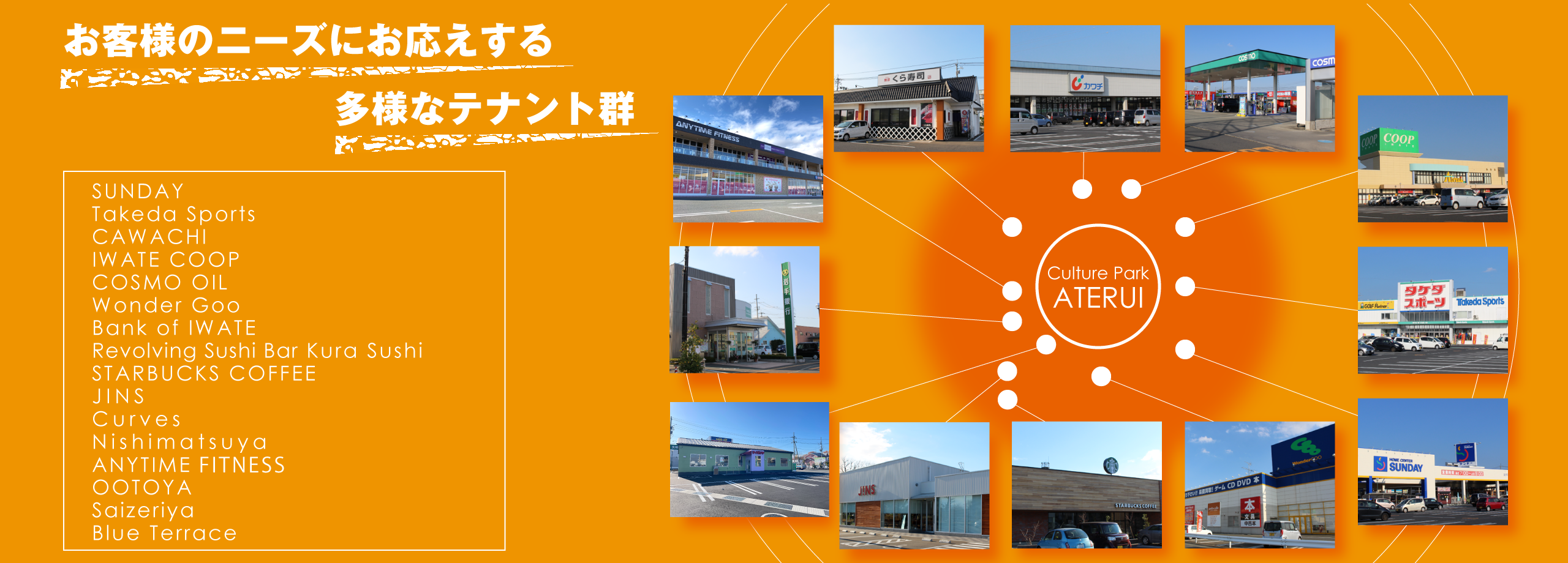 - お知らせ10月1日にCurves水沢あてるい店、10月10日に西松屋カルチャーパークあてるい水沢店が開店しました。